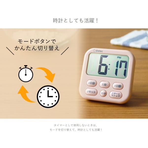 キッチンタイマー マグネット 時計表示 T-615 シャボン6 dretec 学習タイマー フィットネス デジタル 乾電池式 卓上 壁掛け フック付 ピンク T-615PK ◆メ