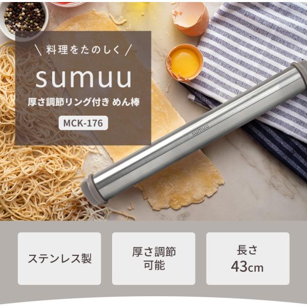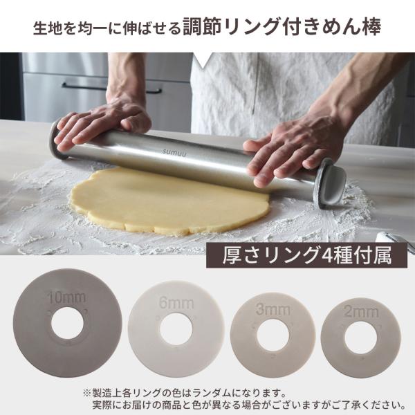 sumuu スムウ 厚さ調節リング付 めん棒 麺棒 ステンレス 43cm ガイド付き 均一に伸ばせる お菓子作り キッチン用品 調理器具 MCK-176