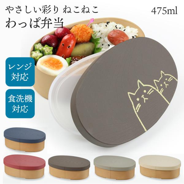 曲げわっぱ 弁当箱 抗菌 電子レンジ対応 食洗機対応 やさしい彩り ねこねこ 475ml 中フタ バンド付き 日本製 1段 女子 女性 るり あかね くるみ あま きなり
