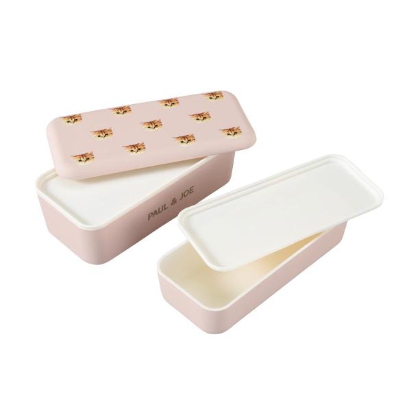ポール & ジョー ブレイクタイム ランチボックス・長方形・2段 ヌネット・ピンクベージュ ネコ 猫 ねこ 弁当箱 入れ子式 ゴムバンド付 お弁当箱