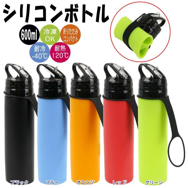 メール便 送料無料 シリコンボトル 折りたたみ 収縮可能 600ml 水筒 おしゃれ 直飲み 軽量 ウォーターボトル ドリンクボトル Fcm