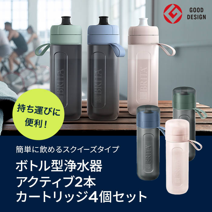 \ ポイント10% 4月12日23:59まで / お得な2本セット 浄水器 ブリタ brita 公式 ボトル型浄水器 アクティブ 2本セット カートリッジ4個付 全容量0.6L