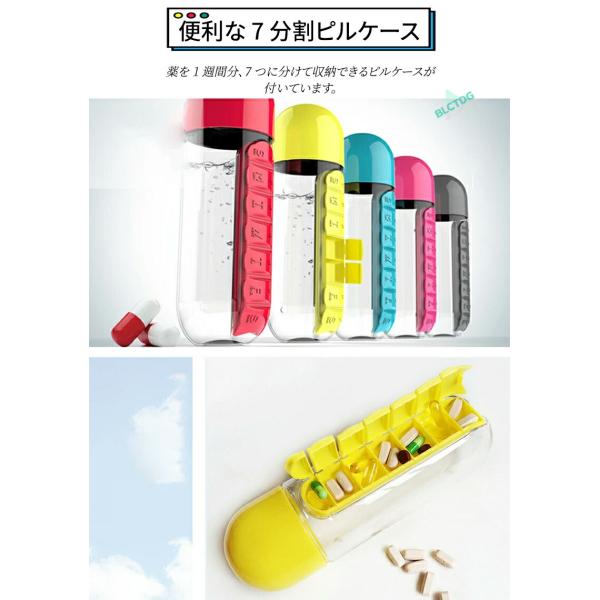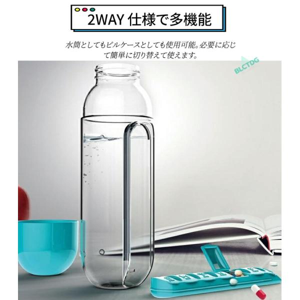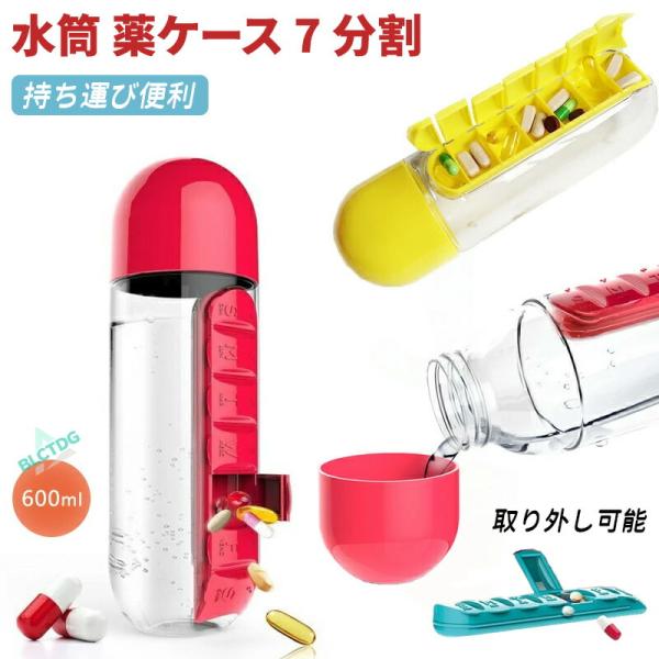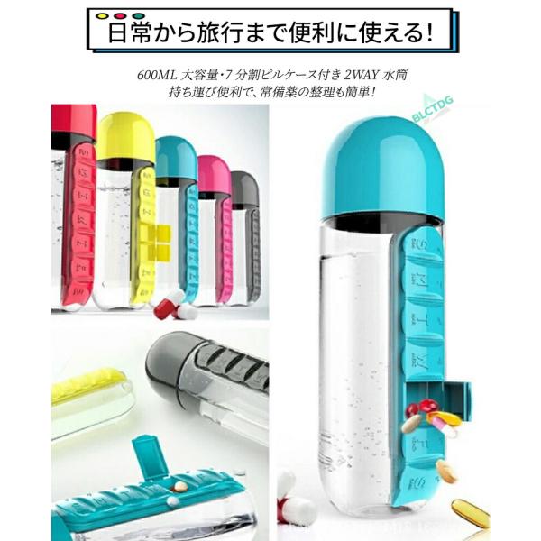 水筒 薬ケース 7分割 ピル収納 600ml 2way コップ付き 1週間分 常備薬 おくすり アウトドア お出かけ 便利 ギフト プレゼント 薬入れ かわいい 持ち運び