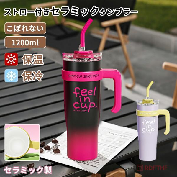 大容量ボトル 耐冷耐熱ボトル 保温保冷 タンブラーセラミック ストロー タンブラー セラミックコーティング 水筒 母の日 蓋付き 直飲み 持運び 牛乳 保温 1200ml