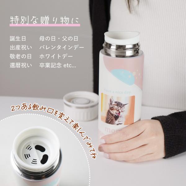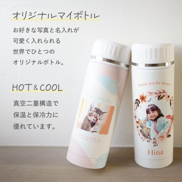 【名入れ・写真プリント無料】 写真入り ドリンクボトル 340ml 水筒 マイボトル 名入れ 名前入り 蓋付き 柄 保冷 保温 ステンレス 卒業記念品 二重構造 持ち運び