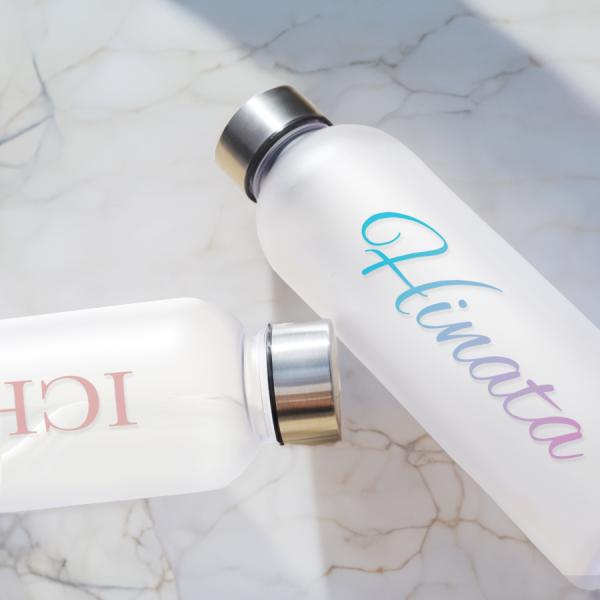 【名入れ無料】ウォーターボトル 時間 メモリ付き 500ml ドリンク ボトル タイムマーカー 1日 2リットル 習慣 健康 水分補給 フタ付き 名入れ マイボトル 誕生日