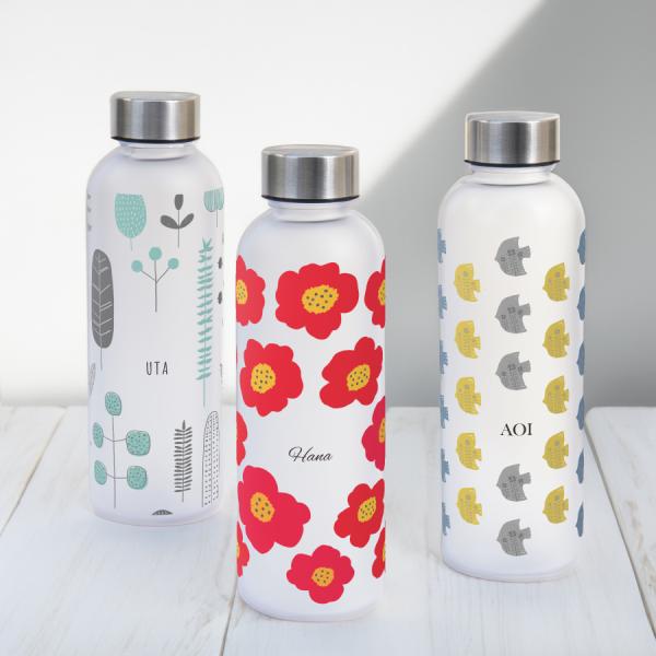 【名入れ無料】ウォーターボトル 北欧風 カラフル 500ml ドリンク ボトル タイムマーカー 1日 2リットル 習慣 健康 水分補給 フタ付き 名入れ マイボトル 誕生日
