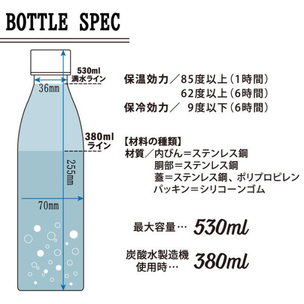 ステンレスボトル 炭酸飲料 スポーツドリンク 対応 530ml 炭酸対応 スポーツドリンク対応 ソーダストリーム対応 ボトル