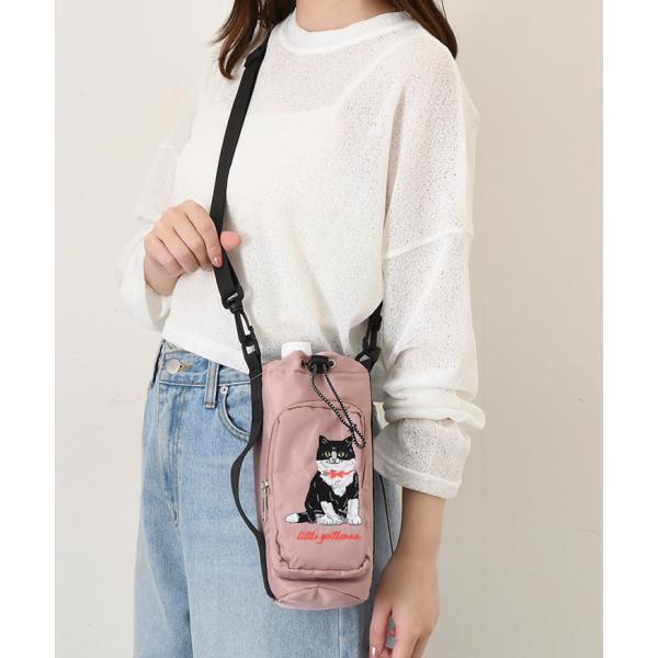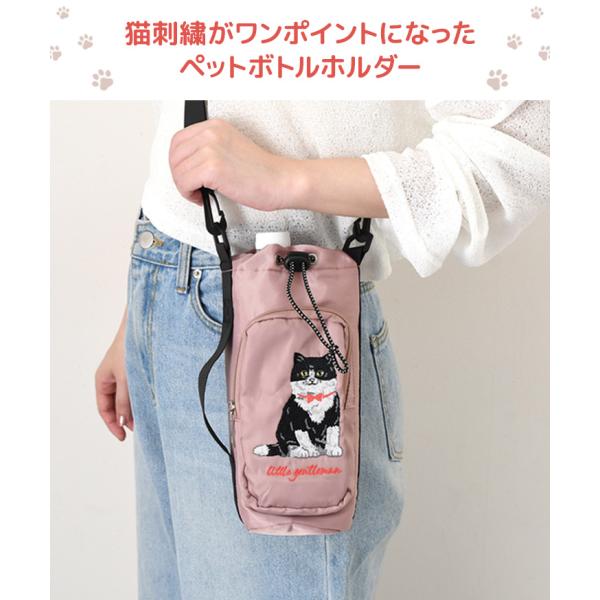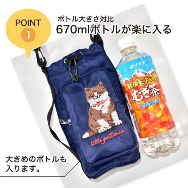ペットボトルホルダー 保冷 肩掛け 500ml 670ml 猫 刺繍 保冷バッグ 保温 軽い レディース 斜めがけ 2way 撥水 水筒 スマホ