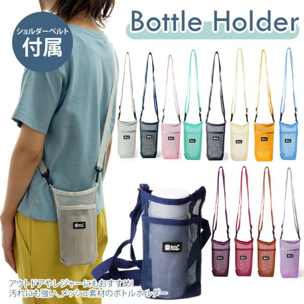 ボトルカバー ボトルホルダー ショルダー ペットボトルホルダー 水筒カバー 水筒ホルダー マイボトル 軽量 ナイロンメッシュ 肩掛け 水筒