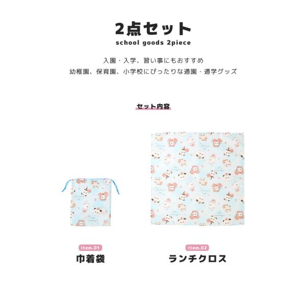 オバケーヌ もちもちぱんだ いーすとけん 2点セット 給食袋 巾着 ランチクロス ランチョンマット 給食ナフキン 男の子 女の子 入園入学グッズ 給食ふきん