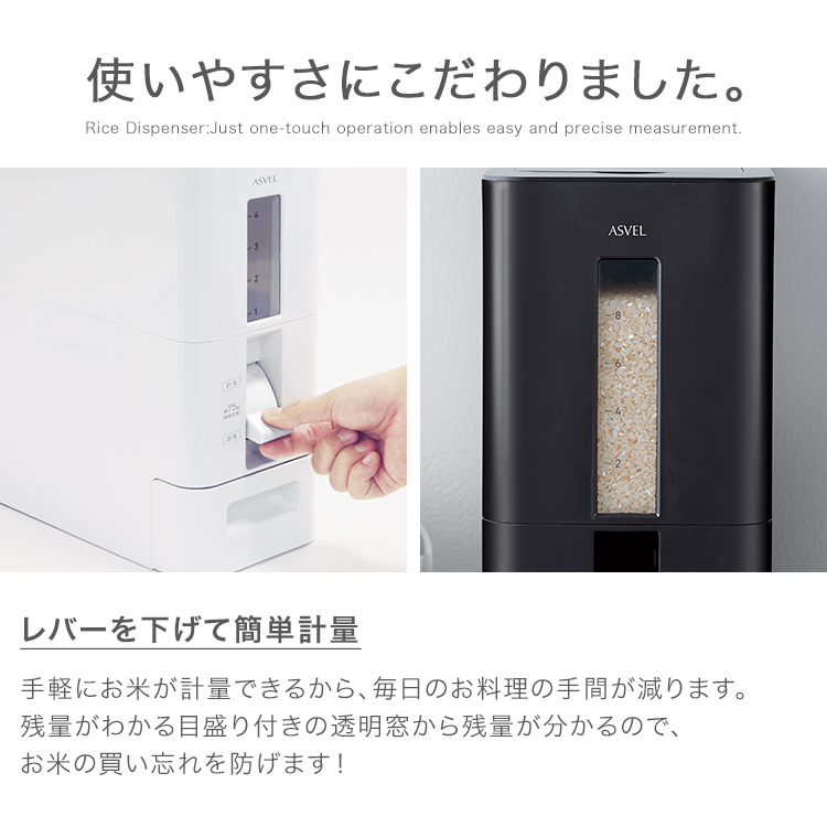 米びつ 計量 S 12kg アスベル ASVEL 1合計量 10kg スリム おしゃれ キッチン用品 キッチン収納 ライスストッカー ライスボックス 無洗米 ギフト