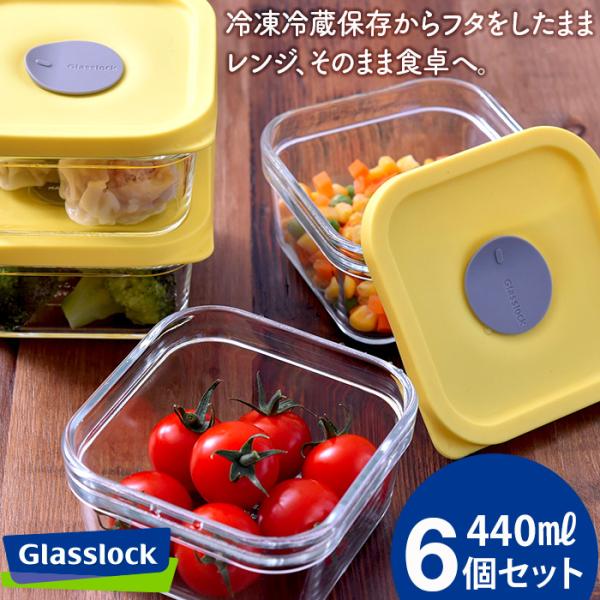 ラップいらず 割れにくい 耐熱ガラス容器 6点 セット フタごとレンチン グラスロック レンジクック イエロー 440ml 食洗機 電子レンジ 送料無料