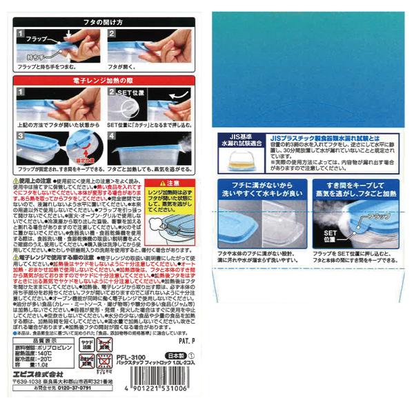 エビス パックスタッフ フィットロック 1.0L 2コ入 PFL-3100 保存容器 プラスチック 開けやすい 冷凍 電子レンジ