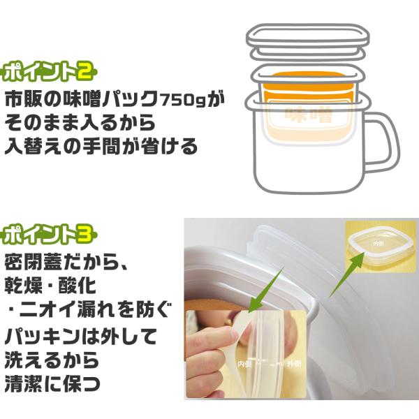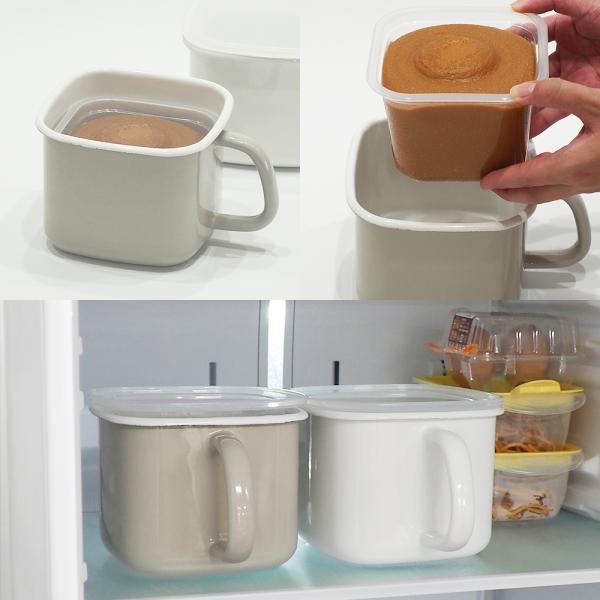 味噌ポット みそポット 富士ホーロー 限定カラー グレージュ 密閉 保存容器 ホーロー容器 味噌 調味料入れ 角型 ホーロー 琺瑯 N-KP