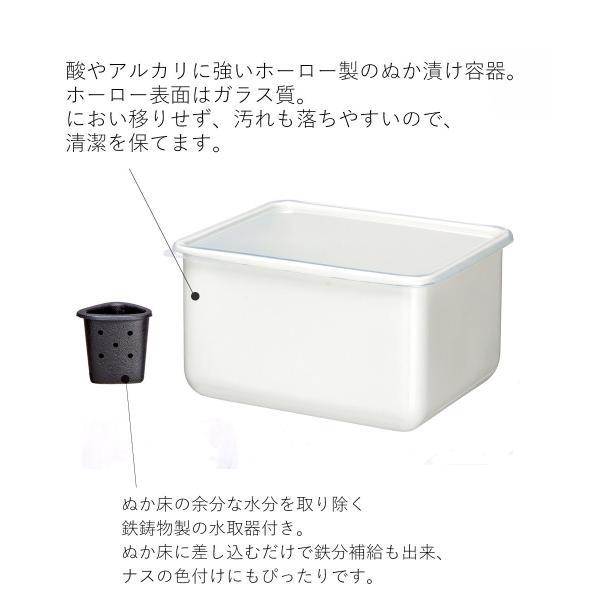 ホーロー ぬか漬けセット 水取り器付 角型 4L HSP-NS 高木金属 | ぬか漬け 容器 ぬか漬け容器 漬物容器 糠漬け 密閉 保存容器 漬物 ほうろう 琺瑯 ホーロー容器