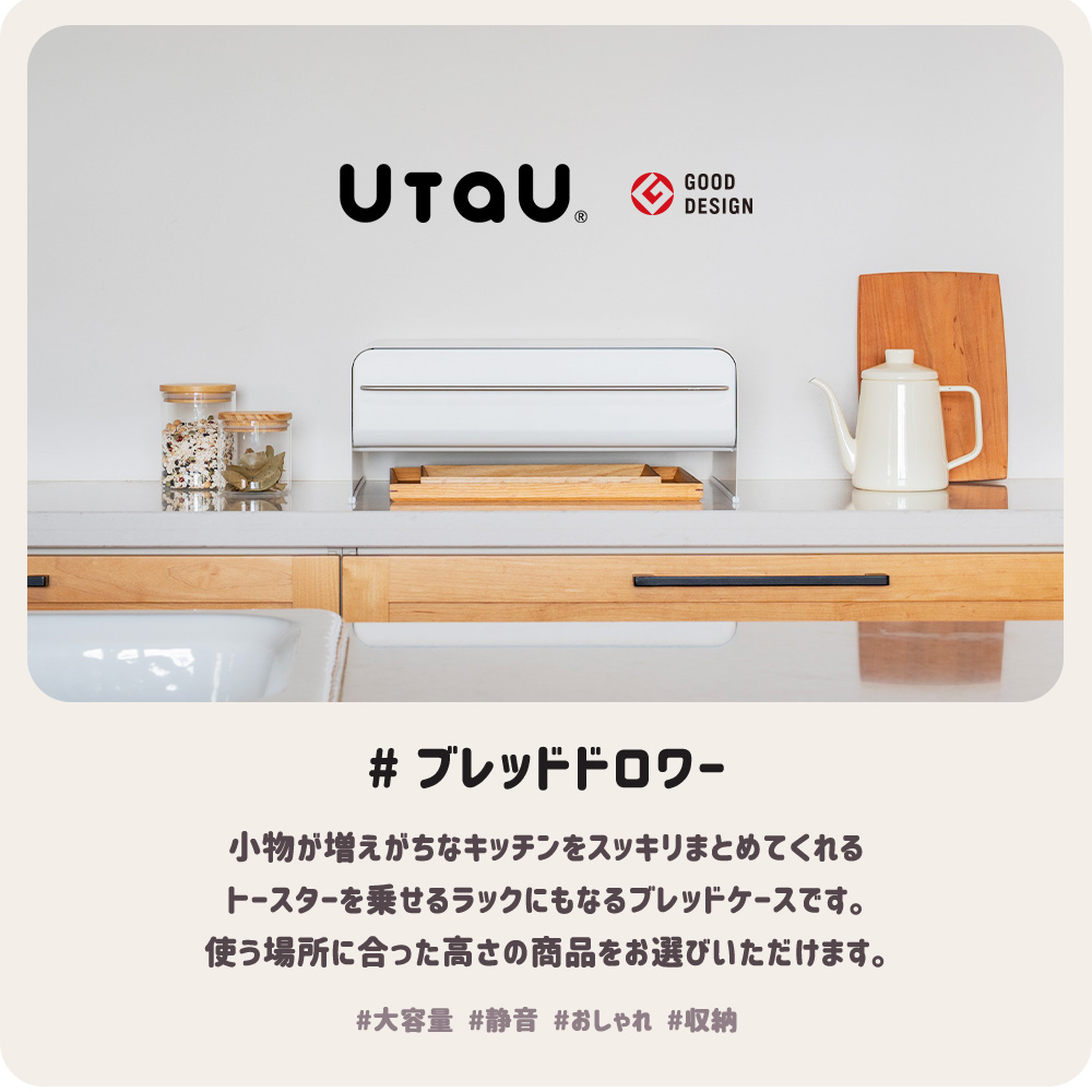 ブレッドケース ロータイプ おしゃれ 大容量 北欧 ブレッドドロワー ホワイト トースター 食パン ラック ウタウ UtaU ビーワーススタイル