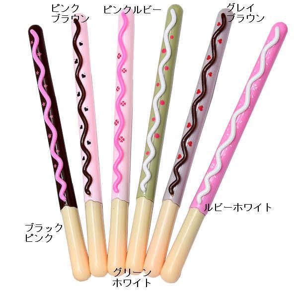 チョコがけプレッツェルのようなボールペン。バリエーションを揃えて並べたい。 プチギフト 雑貨 プレゼント 文具 かわいい おもしろ 子供 小分け チョコレート