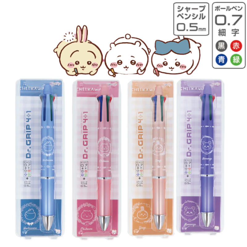 ちいかわ ドクターグリップ ボールペン シャープペン 多機能ペン 文房具 文具 筆記用具 ペン 赤 青 緑 黒 4色ボールペン ちいかわ ハチワレ うさぎ モモンガ