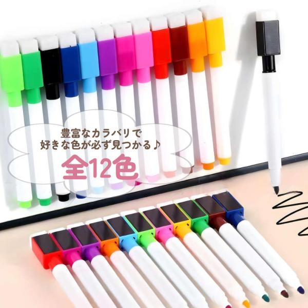 ホワイトボード用マーカーペン12本セット。今だけおまけ付き!キャップに磁石とイレーザー付き ペン 消せる 消しゴム カラフル コンパクト 掲示板