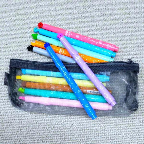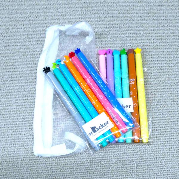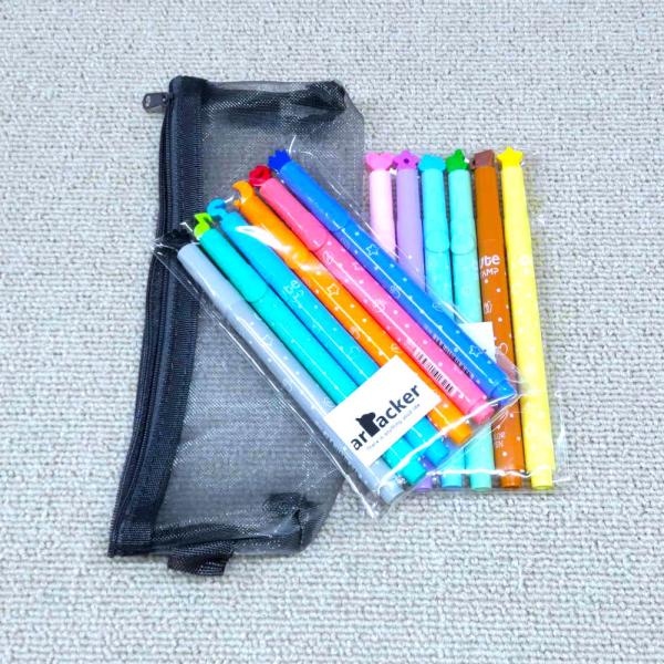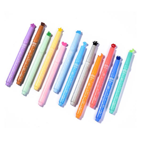 ペン先がスタンプのマーカーペン12色セット。押せば模様、引けば線。 セット スタンプ ペン 蛍光ペン かわいい おしゃれ カラーペン 水性 2way