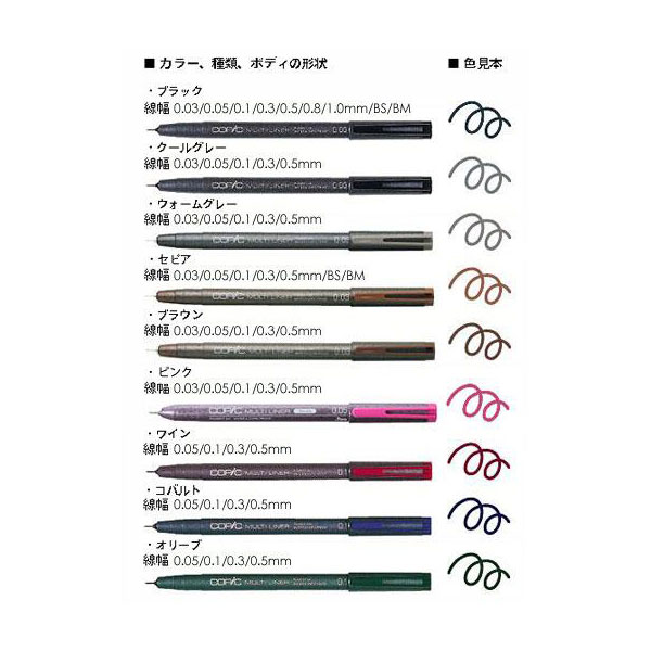 コピック マルチライナー ラインドローイングペン 耐水性 耐アルコール性 イラスト 漫画 ペン画 COPIC