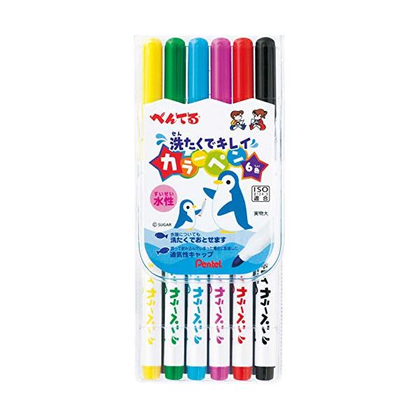 ぺんてる 水性ペン 洗たくでキレイカラーペン SCS2-6 6色
