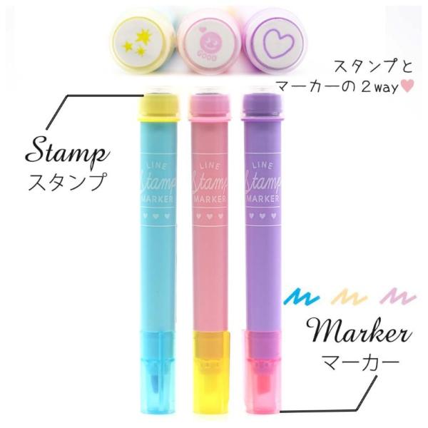 カラーペン かわいい 女の子 ラインスタンプマーカー 3本セット ペンセット マーカー 文房具 文具 女子 子供 キッズ 小学生 低学年 高学年 誕生日 プレゼント
