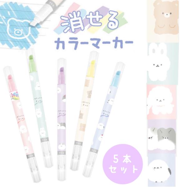 マーカーペン 蛍光マーカー 文房具 消せるカラーマーカー5本セット かわいい 蛍光ペン 太字 細字 文房具セット 小学生 女の子 高学年 低学年 プチギフト 子供