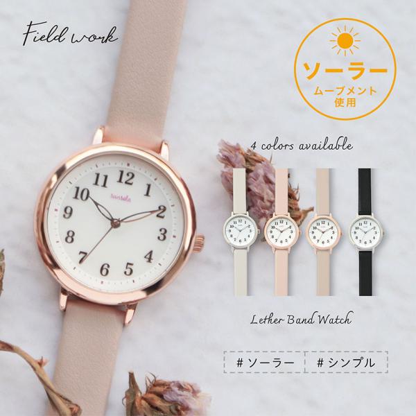 腕時計 レディース ソーラー エドア 革ベルト シンプル ソーラーウォッチ 見やすい おしゃれ 可愛い きれい 仕事用 通勤 通学 小さめ トレンド フィールドワーク