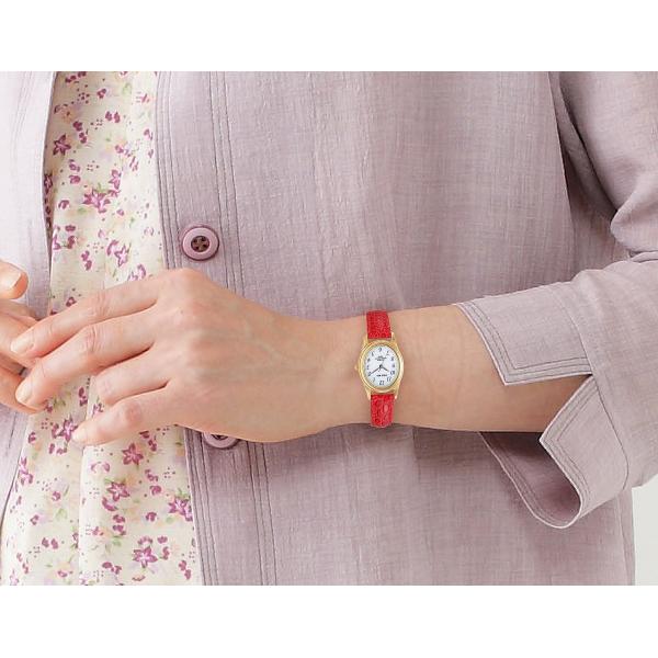 シチズン腕時計 FREE WAY ソーラー電源ウォッチ 牛革ベルト レッド 女性用 電池交換不要 秒針 見やすい 保証書付 CITIZEN 母の日