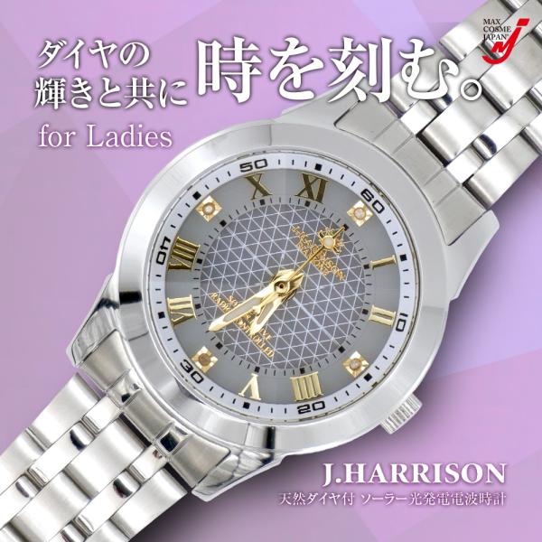 腕時計 レディース 電波 ソーラー 光発電 天然ダイヤ 4石 防水 ビジネス J・ハリソン JH-082A 正規品