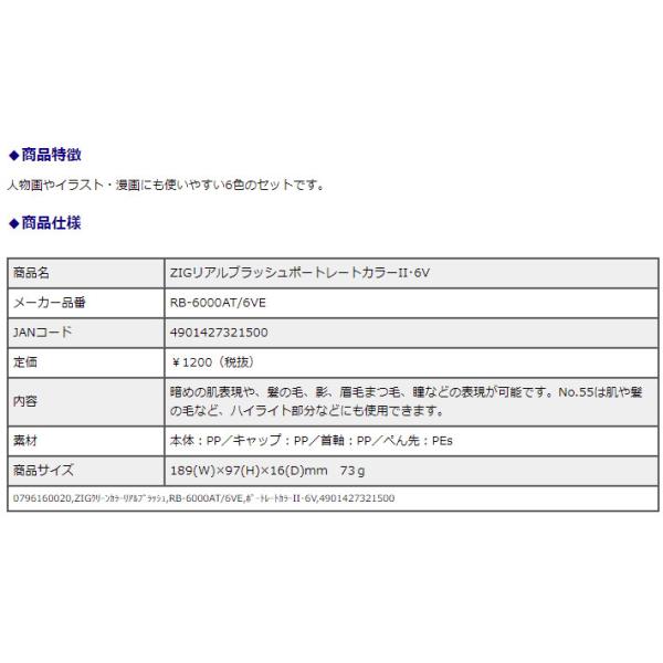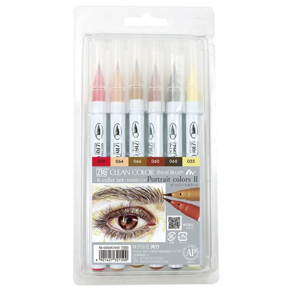 呉竹 ZIG クリーンカラー リアルブラッシュ ポートレートカラーII・6V 毛筆ペン カラーペン