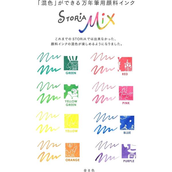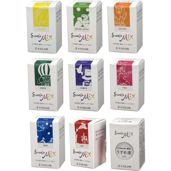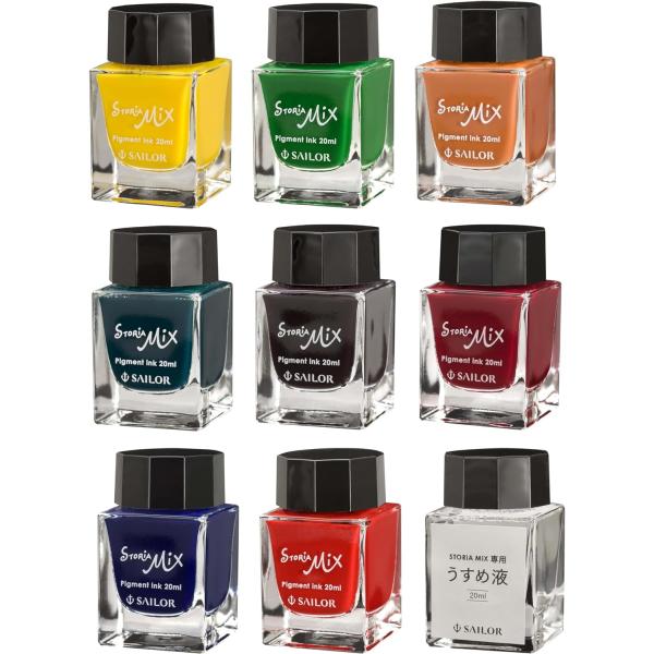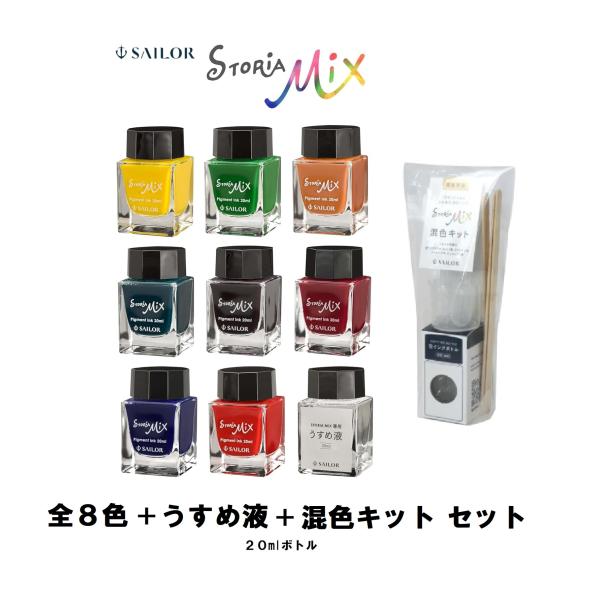 翌日発送A セーラー万年筆 【ストーリアミックスシリーズ9本セット(8色セット+うすめ液)+混色キット】万年筆用ボトルインク 顔料インク 20ml