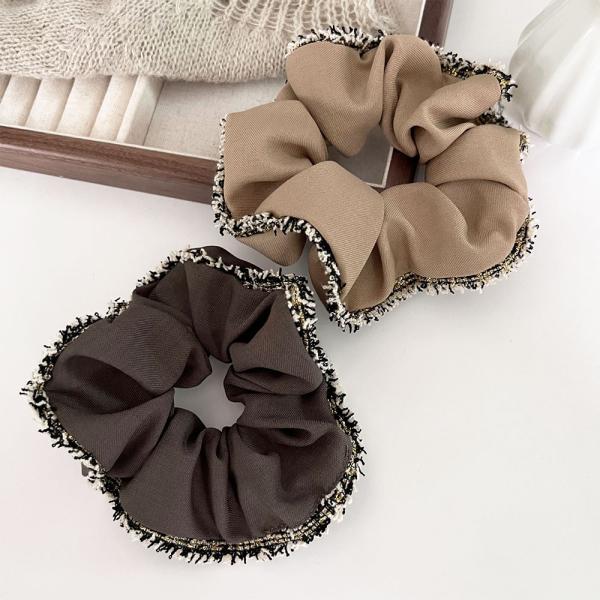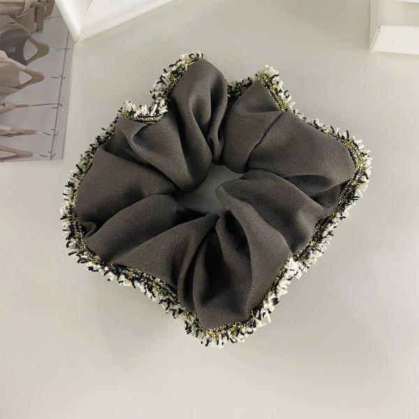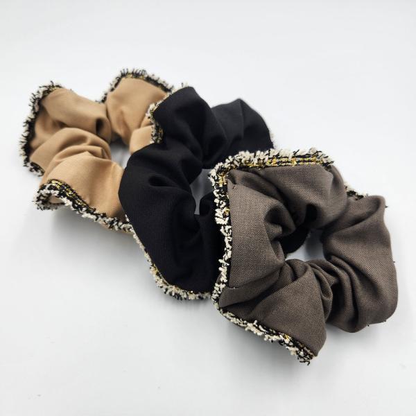 フリンジ シュシュ ボリューム ヘアアクセサリー 大きめ まとめ髪 黒 ブラック 簡単アレンジ 髪ゴム 追跡可能メール便