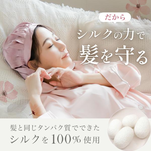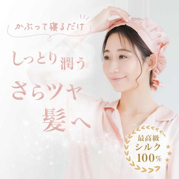 シルク ナイトキャップ ロング ロングヘア ショートヘア かわいい レディース 女性 シルクナイトキャップ シルク100% 保湿 ヘアケア ミディアム 紐