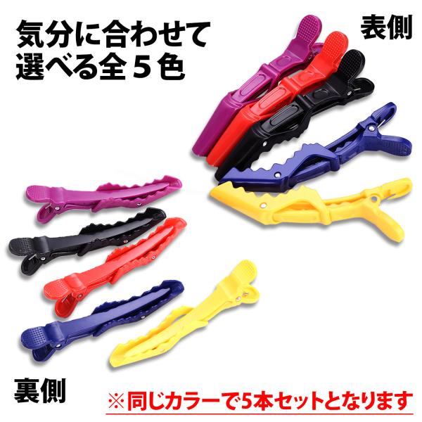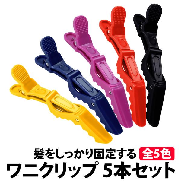ワニクリップ 5本セット ヘアクリップ ドラゴンクリップ ブロッキング 美容室 美容師 ワニ クリップ ダッカール 髪の毛 挟む サロン 特殊歯型構造