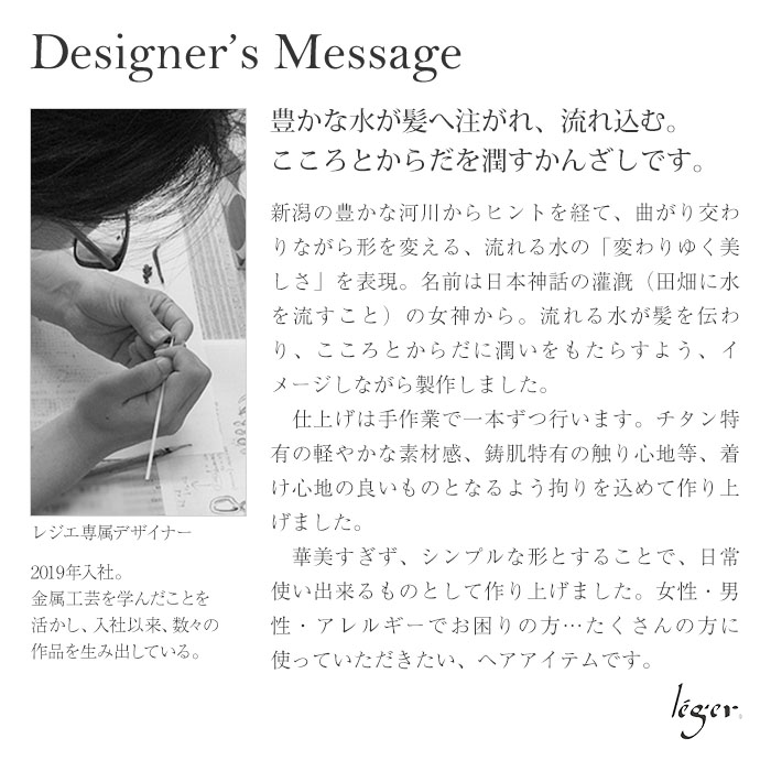 チタン かんざし ミヅハノメ 錆びない シンプル 簪 かんざし 棒さし 髪留め 髪飾り まとめ髪 日本製 金属アレルギー対応 HL001KNZS レジエ レジェ leger