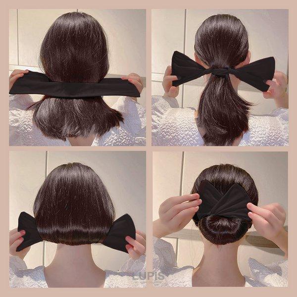 デフトバン ヘアアクセサリー リボン シンプル ブラック シニヨン ワイヤー入り 簡単アレンジ 時短アレンジ お団子 ポニーテール 40代 ルピス lupis