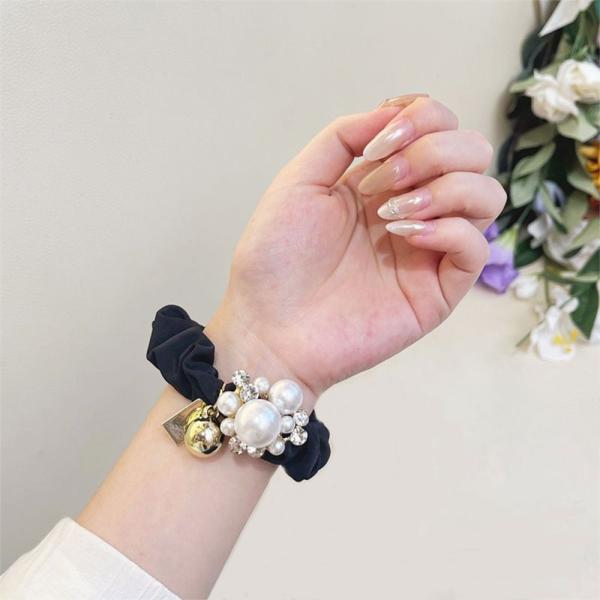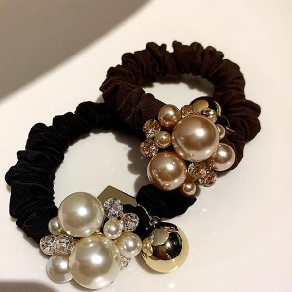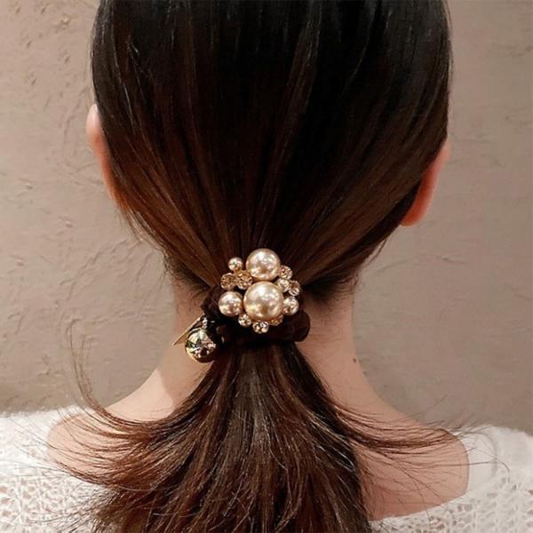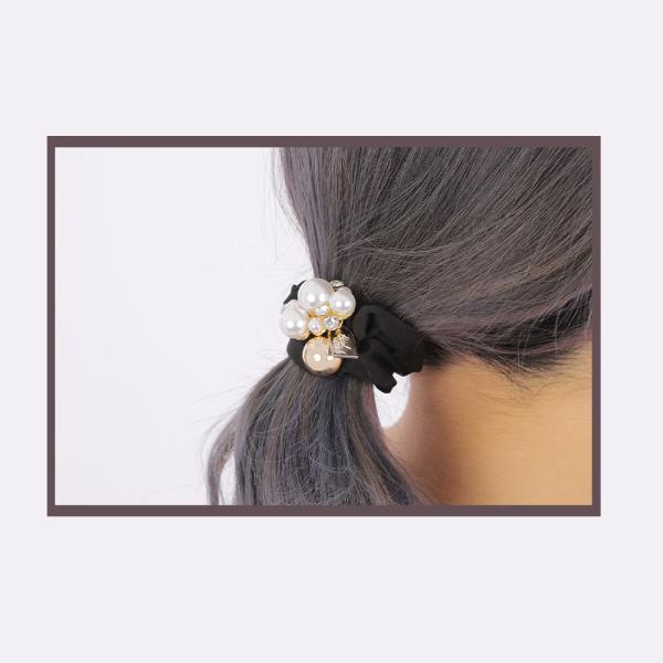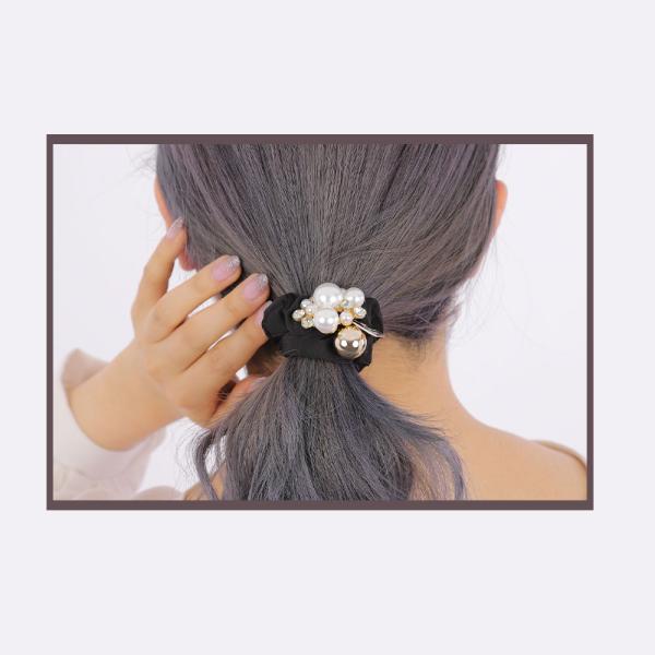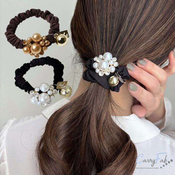 シュシュ パール キラキラ ヘアゴム ヘアアクセサリー おしゃれ ヘアアレンジ 髪飾り まとめ髪 飾りゴム ポニーテール 黒 ブラック ブラウン 簡単 かわいい