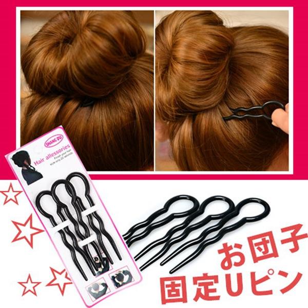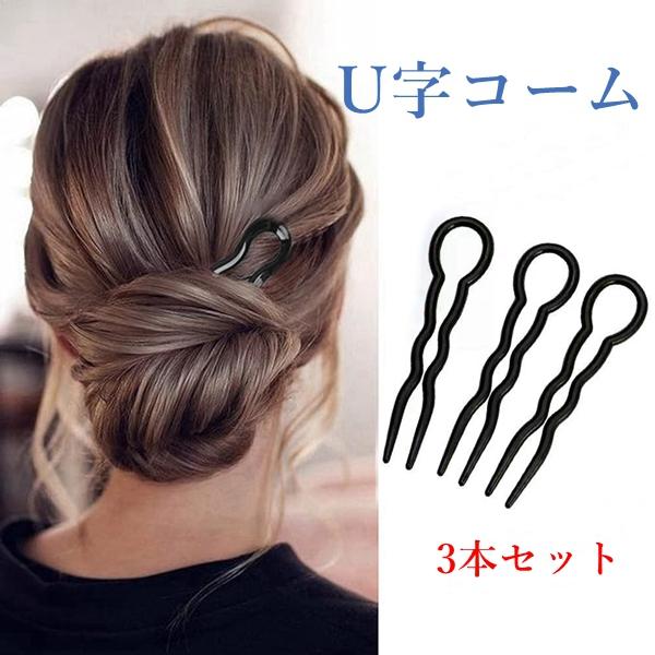 U字コーム 3本セット かんざし 簪 レディース ヘアアクセサリー u字ピン 髪飾り 髪留め 無地 簡単 おだんご