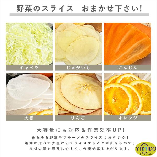 【替刃2枚付】YiMiDO スライサー 千切り 業務用家庭用 キャベツ キャベツスライサー 野菜スライサー 薄切り 回転式 手動 肉/パン/ハム/チーズ/野菜/果物 KIPROS