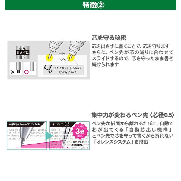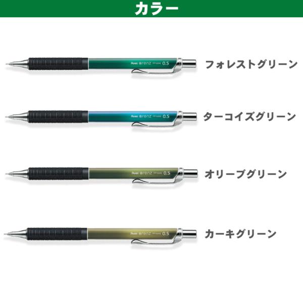 ぺんてるオレンズ メタルグリップタイプ 0.5mm グリーンカラー XPP1505G2-L1 XPP1505G2-L2 XPP1505G2-L3 XPP1505G2-L4 シャープペンシル シャープペン