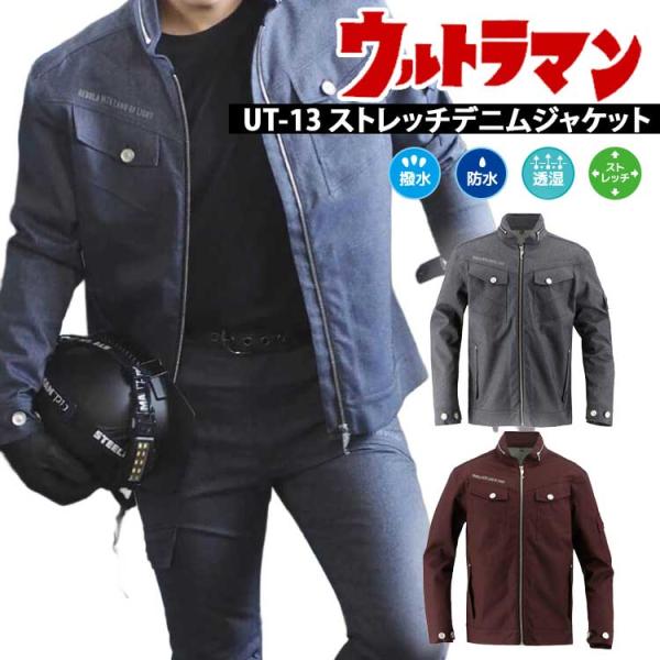 【在庫限り】 ウルトラマン 服 メンズ 作業ジャケット 防水 ストレッチ デニム 収納可能フード付き ウルトラセブン UT-13 ストレッチデニムジャケット 弘進ゴム