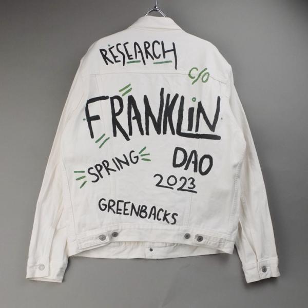 リーバイス ホワイト デニムジャケットバックペイント Gジャン Levi’s 古着 [9021516]