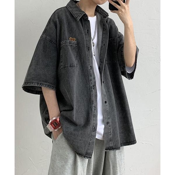 デニムジャケット gジャン オーバーサイズ ワンポイント ビッグシルエット 半袖 ウォッシュ デニムシャツ ジャケット メンズ レディース