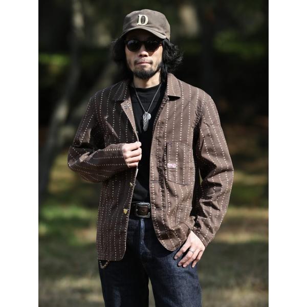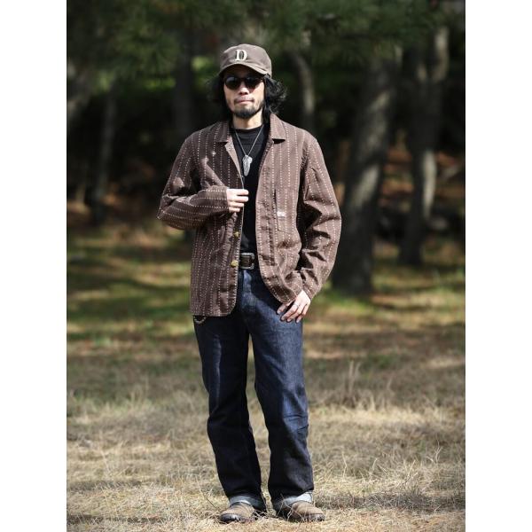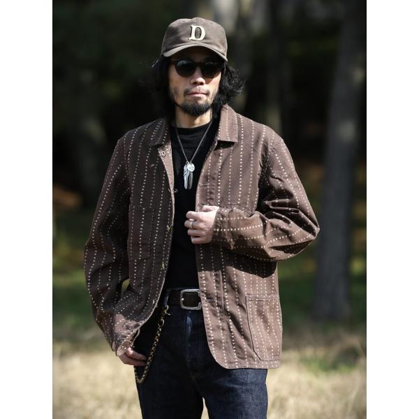 TCBジーンズ キャットハート チョアコート ブラウンウォバッシュ TCB jeans Cathartt Chore Coat Brown Paw Stripe カバーオール デニム ワークウェア