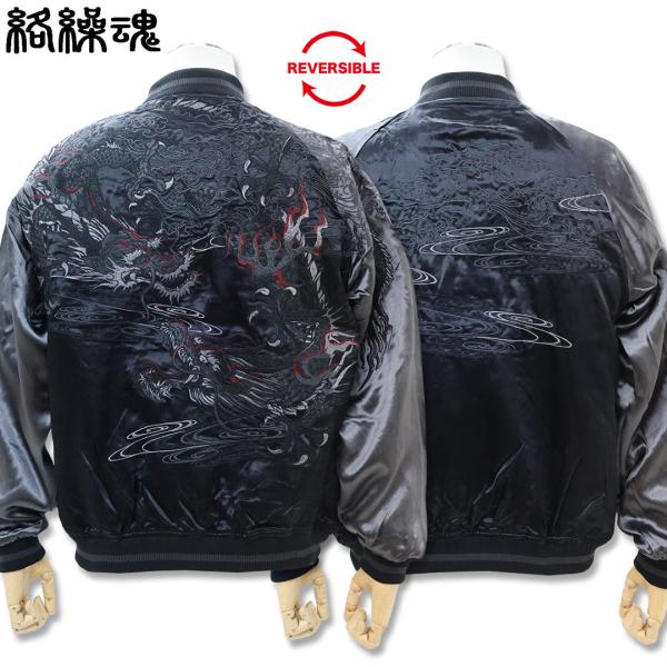 絡繰魂 漆 KARAKURI TAMASHII URUSHI 双龍 リバーシブル スカジャン M L XL XXL #20 BLACK 262029 龍 刺しゅう 和柄 26SS