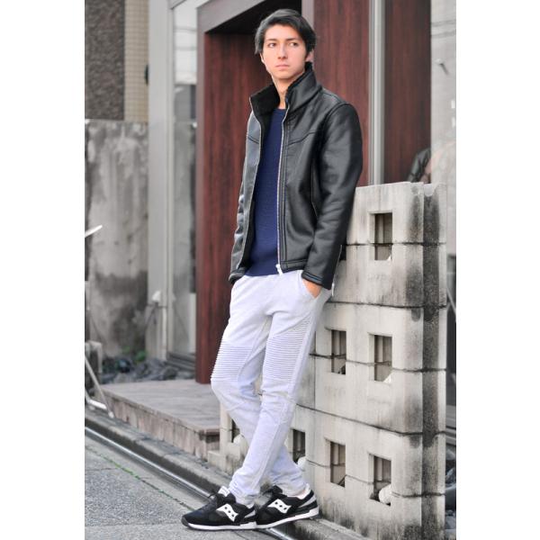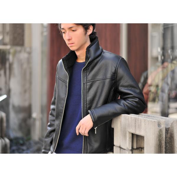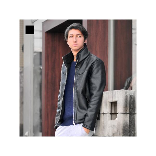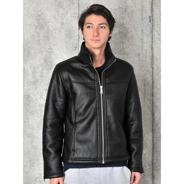 レザージャケット メンズ 合皮 暖かい 冬 秋 ブラック 黒 M ムートン ライダース フェイクレザー 裏ボア EVOLUTION 61513