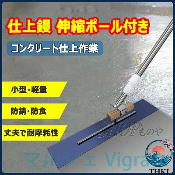 土間用仕上げ鏝 土間鏝本焼 角鏝 伸縮ポール付き 調節可能 スーパーハード鏝 左官コテ 仕上げ マグネシウム鏝 金コテ作業 トンボ